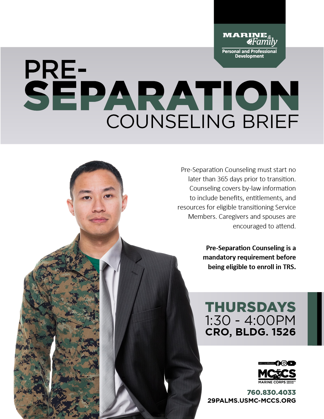 Pre-Separation Counseling is a mandatory requirement before being eligible to enroll in TRS.