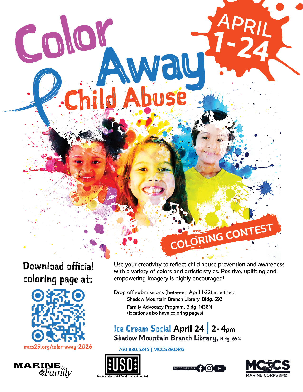 Use your creativity to reflect child abuse prevention and awareness with a variety of colors and artistic styles. Positive, uplifting and empowering imagery is highly encouraged!